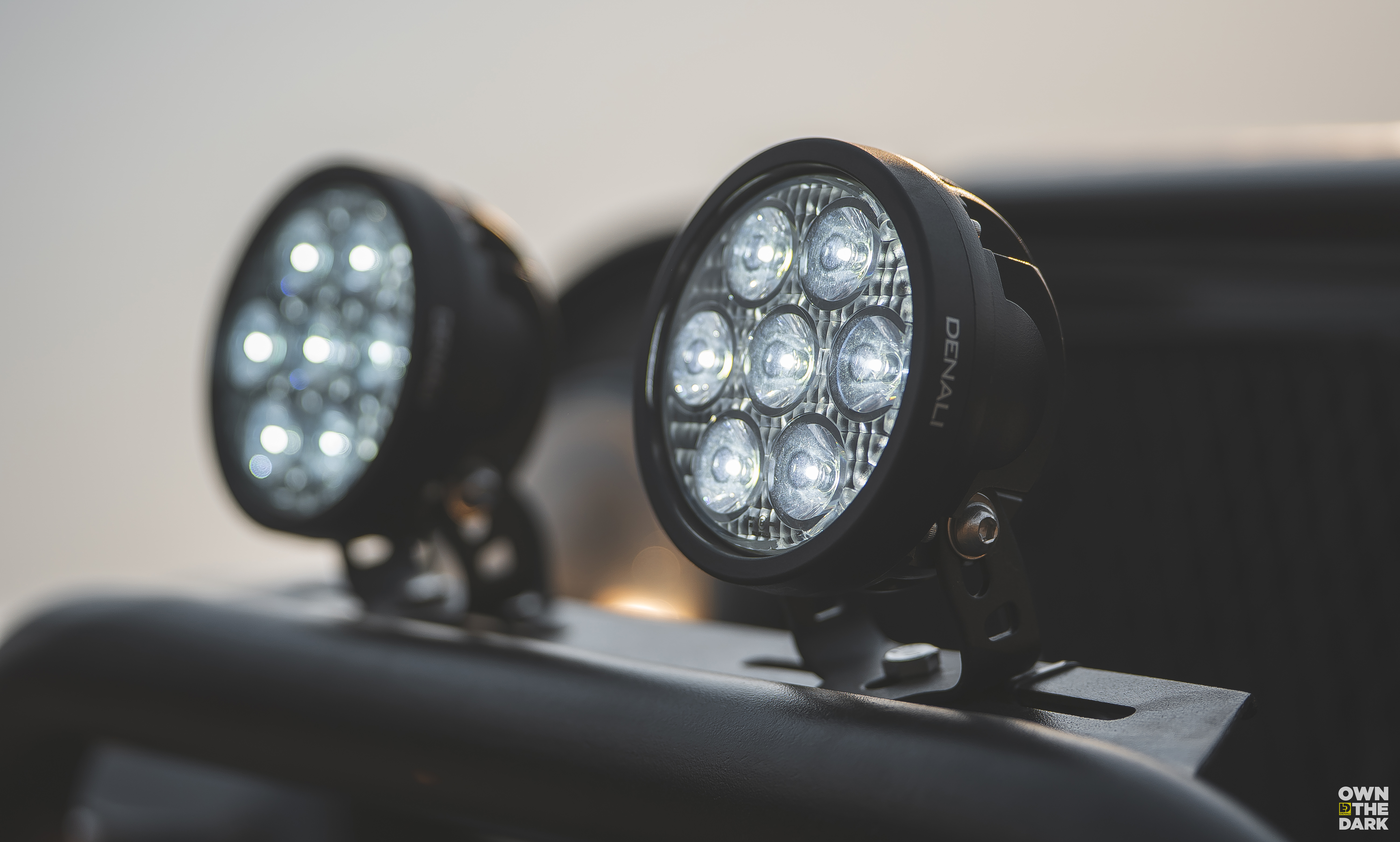 With all the meaty metal back on the vehicle, it was now time to mount the shiny bits. First up, came the DENALI D7 Light Pods with DataDim Technology.