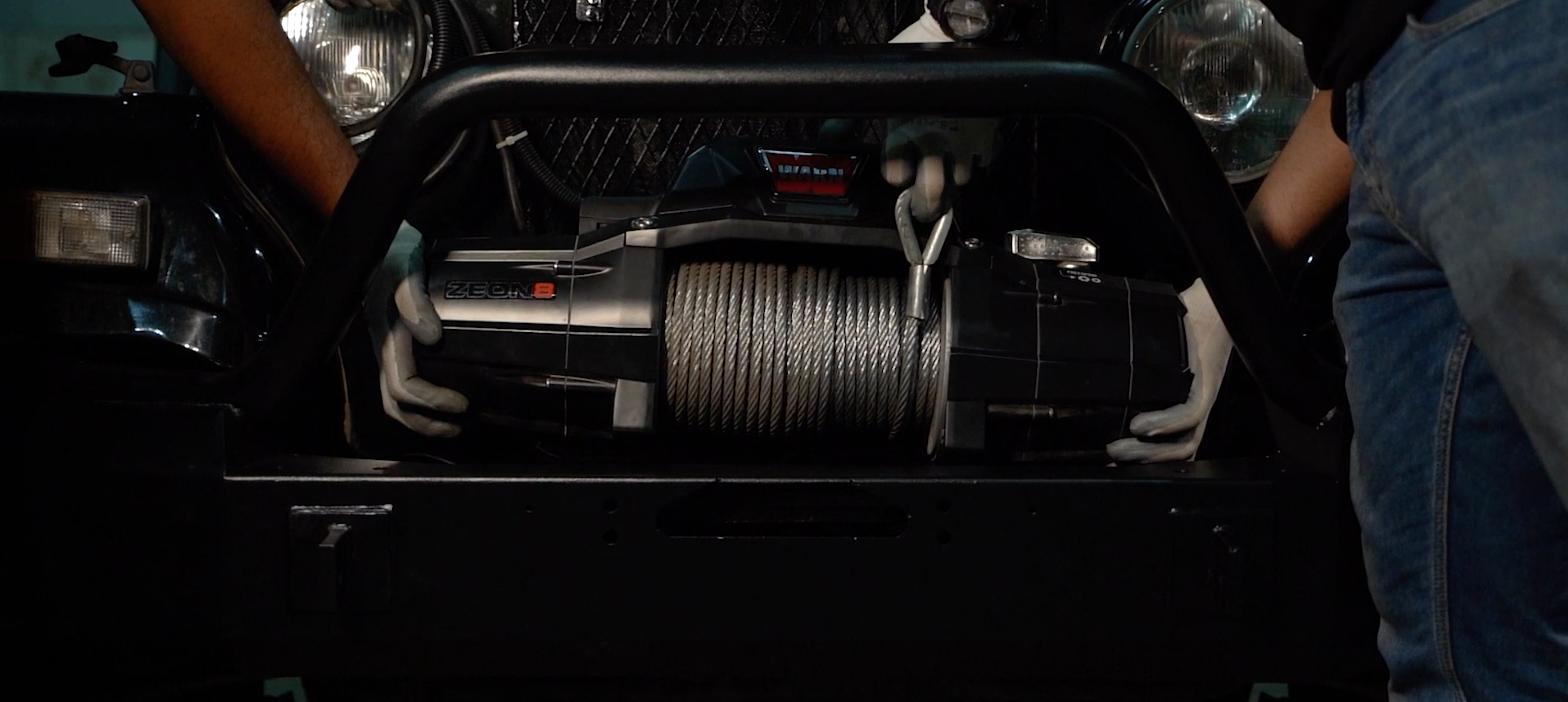 The simplicity with which WARN winches go on and the pace at which a trained tech can wire in these massive pieces of kit surprises us every time! Here, we had pre-marked and drilled the winch-plate and front bumper to accept the ZEON 8, the Fairlead and the Steel Cable and Hook.