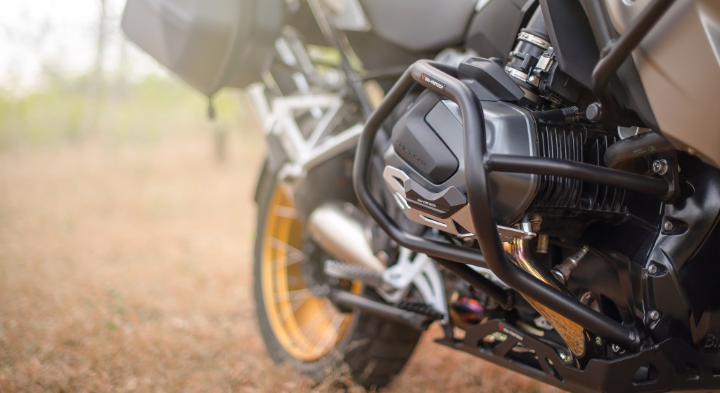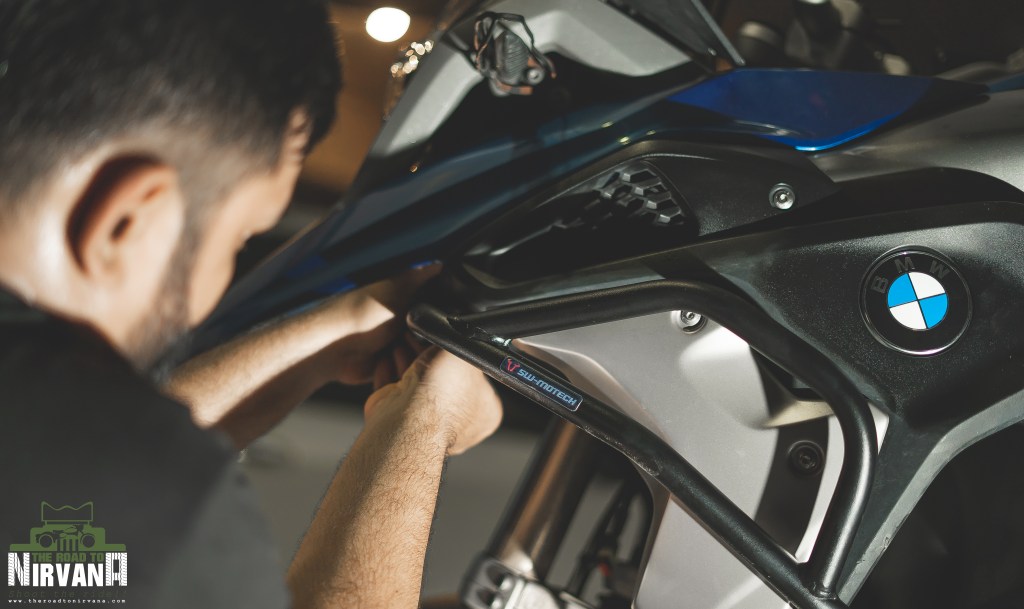 Rolled into our lot for a complete accessories makeover of the BMW R1200GS Motorcycle! His dream machine received all of our Lead Technician’s attention over the course of the day, painstakingly completing the installation of all premium motorcycling accessories from SW-Motech.